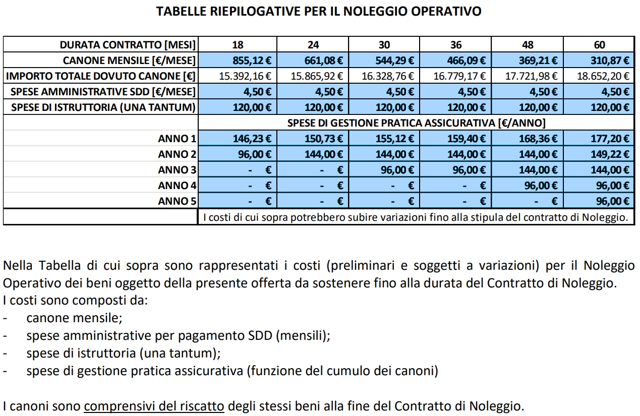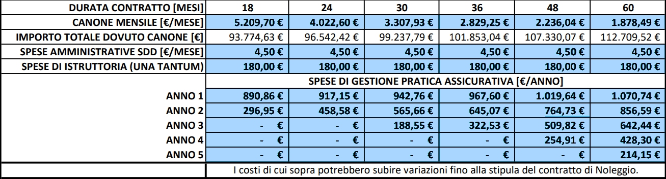 Il tutto con un investimento dilazionato tramite noleggio operativo, per un importo complessivo di 18.652,20 euro, distribuito su 60 mesi.